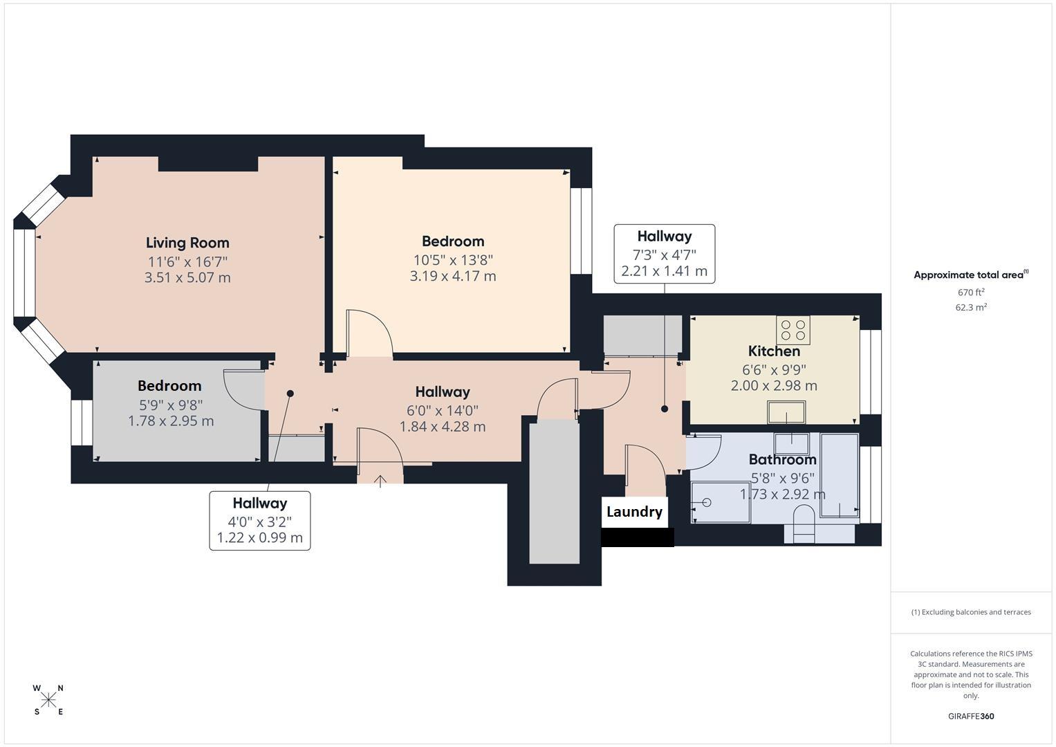 LAUNDRY ROOMHousing washing machine and tumble dryer, tiled floor.