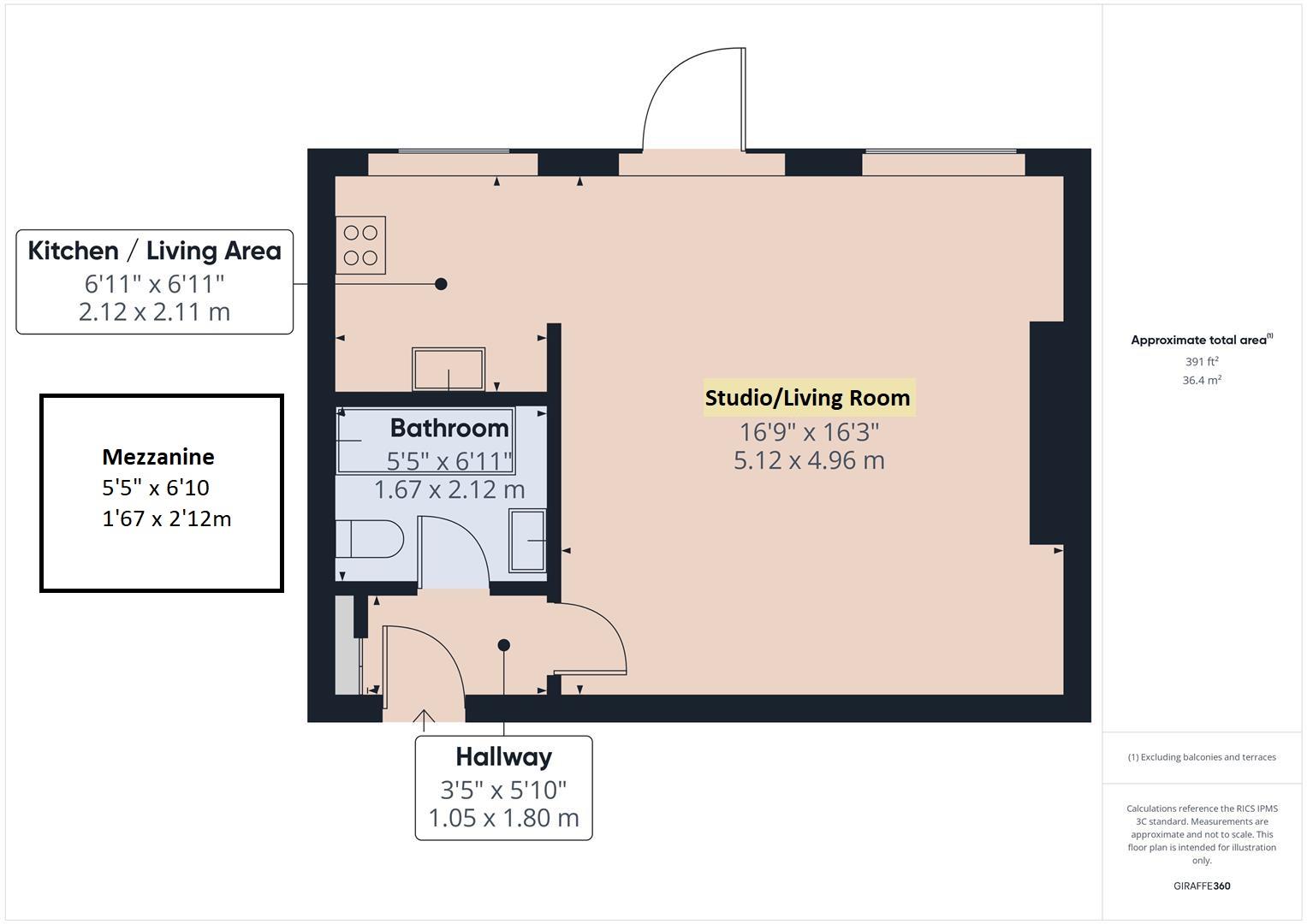 STUDIO ROOM (5.11m x 4.95m (16'9" x 16'3"))