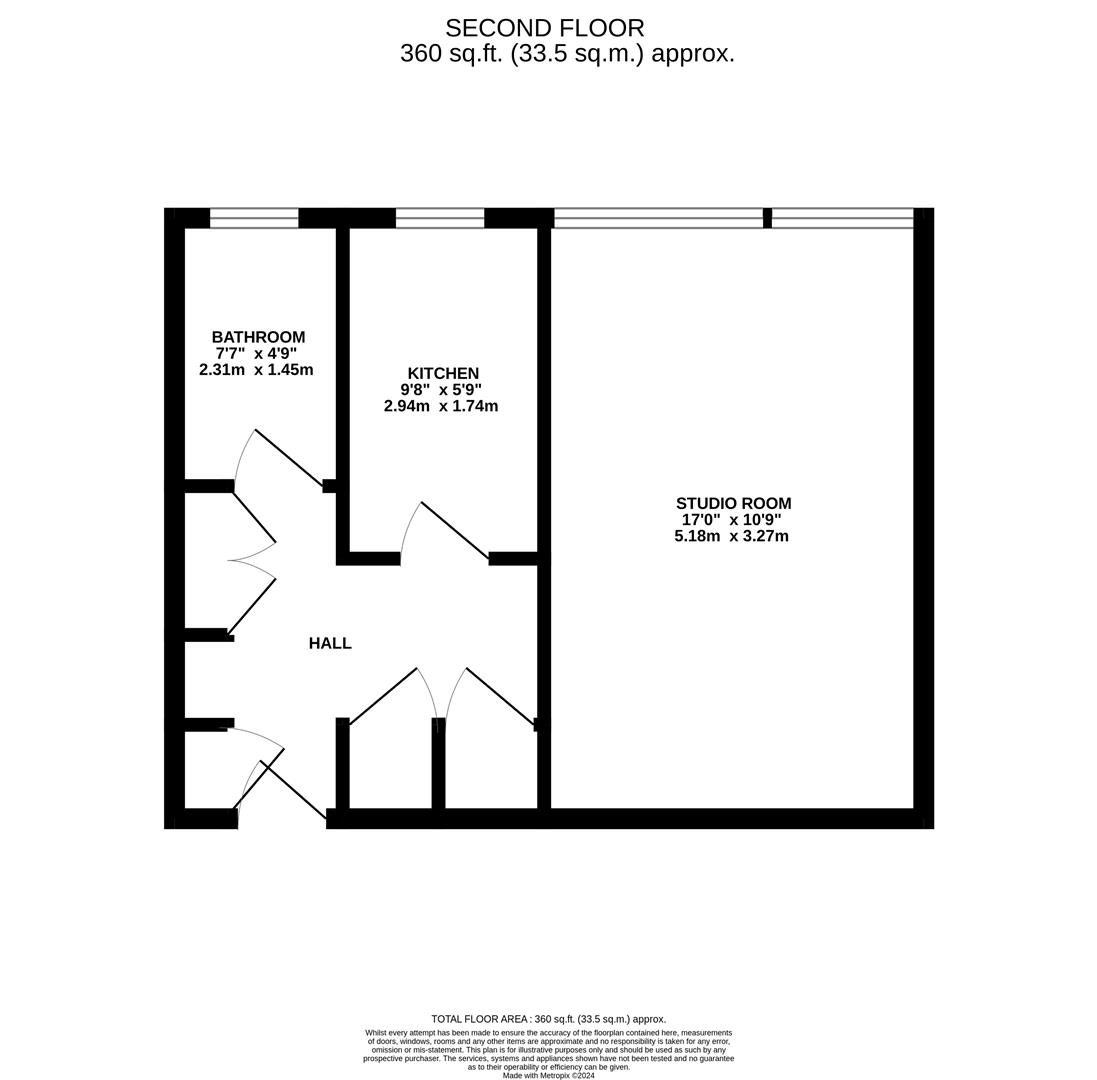 STUDIO ROOMMeasuring 17'0 x 11'0. West aspect full room width double glazed window with oblique views to the sea, wall mounted electric heater.