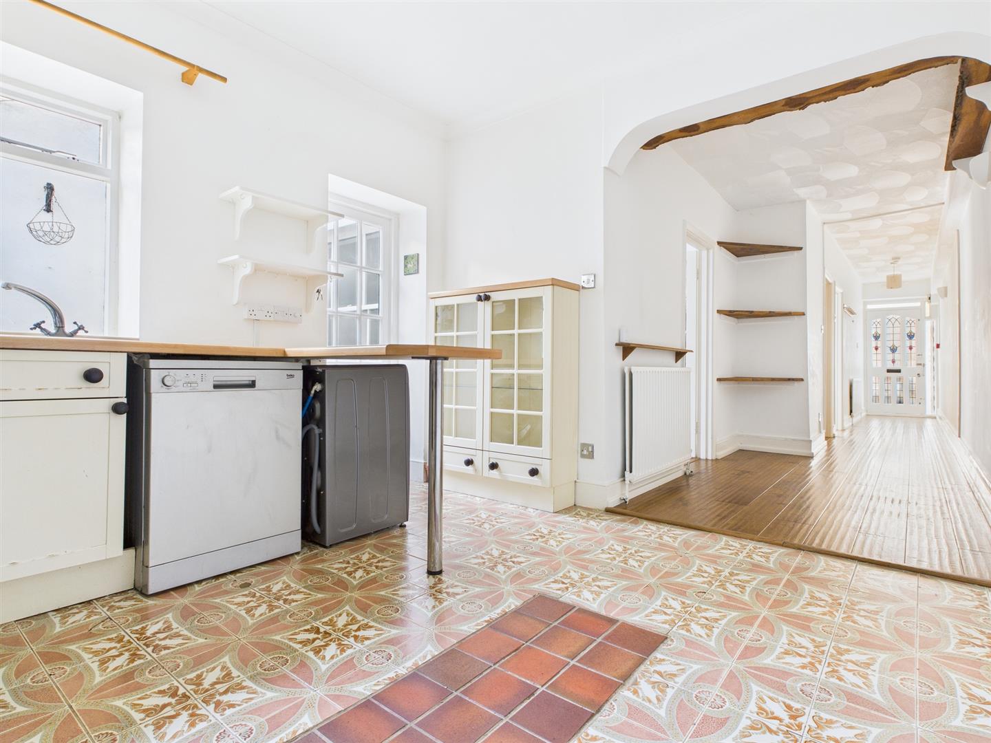 KITCHEN/BREAKFAST ROOMWood effect worktops and breakfast bar, cupboards and drawers under, glass panel dispay cabinet with drawers under,decorative shelving unit with drawers under, further shelving, stainless steel one and a quarter bowl single drainer sink unit with mixer tap, electric oven, gas hob with decoratived tiled splashback and stainless steel extractor hood over, plumbed space for washing machine and dishwasher, space for fridge/freezer, ceiling spotlights, tiled floor, window and glass pane door to REAR PATIO/GARDEN.