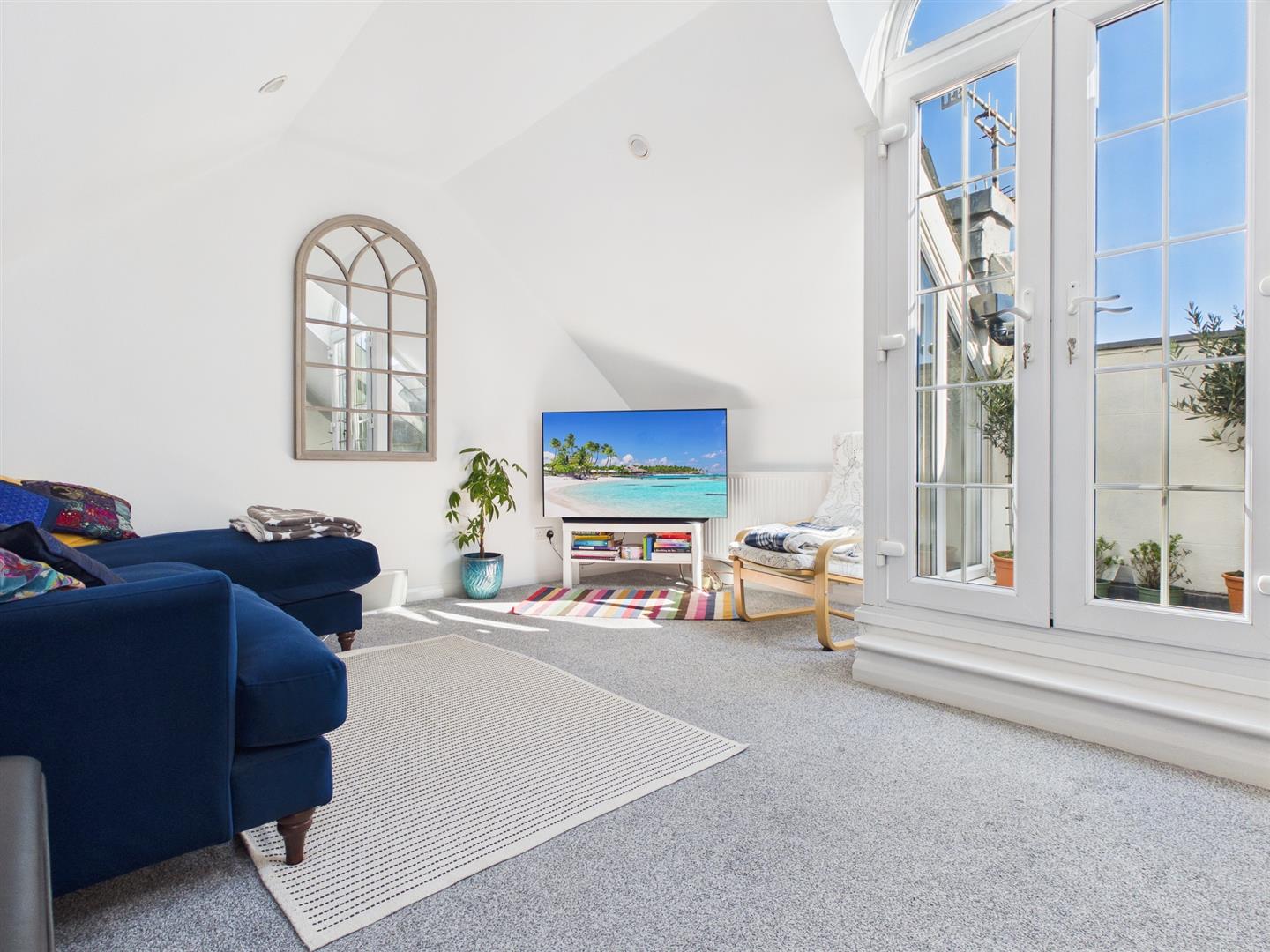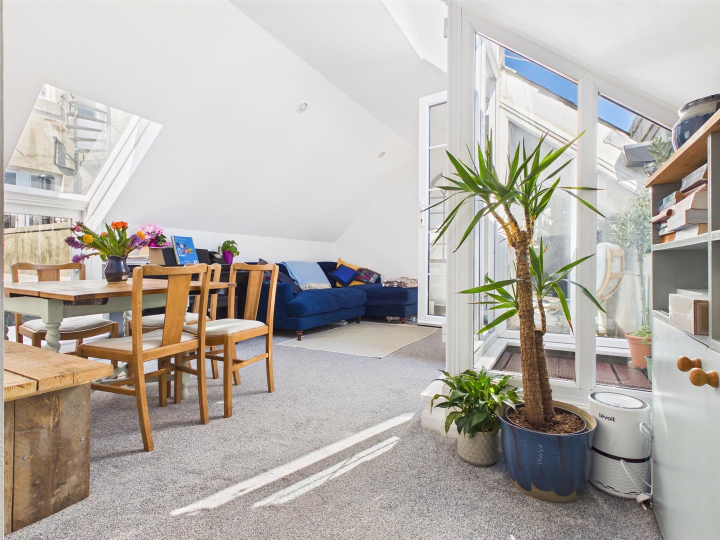 Double aspect, skylight with window under giving access to roof, recessed downlighting, radiator, double glazed doors with double glazed windows to sides to: