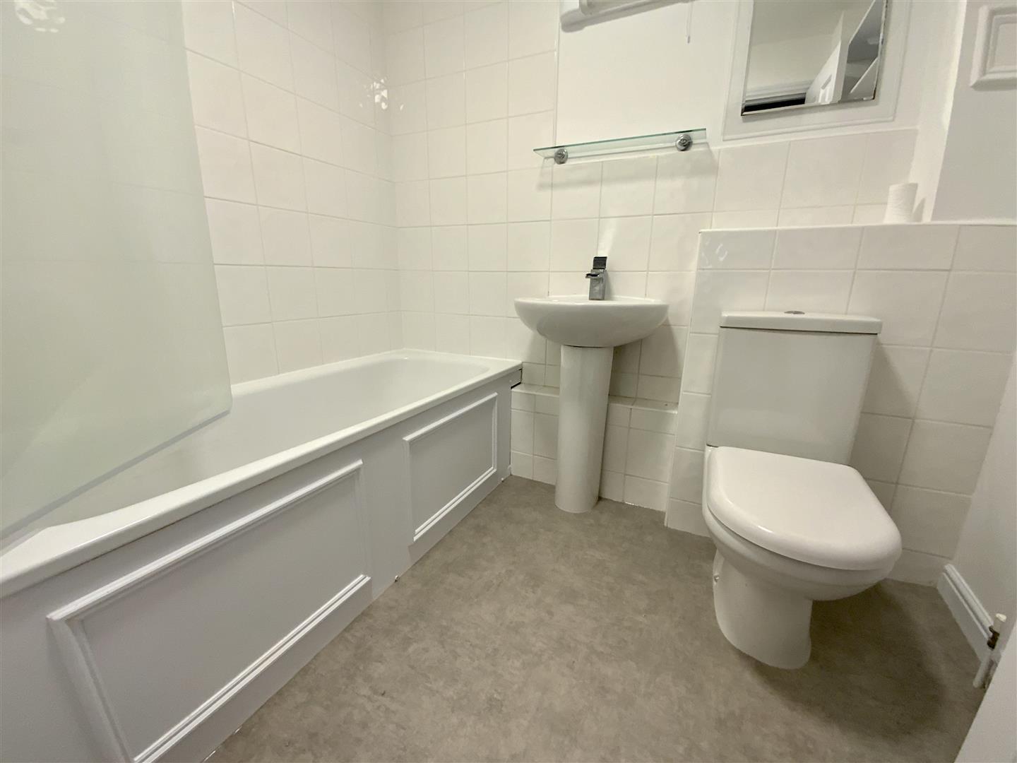 BATHROOMNewly fitted white suite comprising panel bath with mixer tap and wall mounted shower head over, shower screen to side, wash hand basin with mixer tap, low level close coupled WC, part tiled walls, extractor fan, radiator.