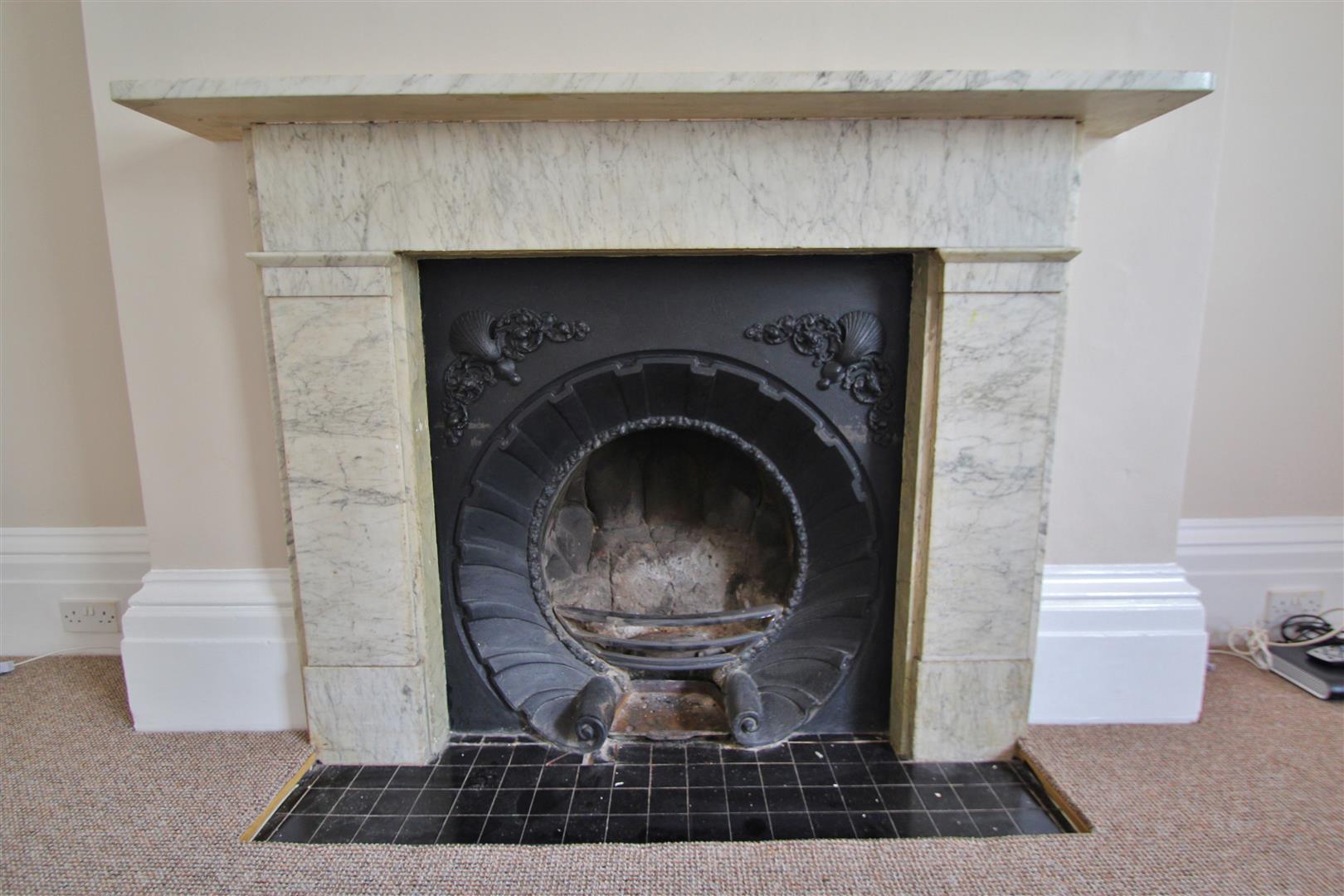 LOUNGETwo sash windows, high ceiling with ornate ceiling coving and rose, picture rail, feature fireplace with marble mantle, cast iron inset and stone hearth, high skirting, radiator. Note: There is wooden flooring which had to be covered by carpet for the purpose of renting but as owner occupiers this can be removed.